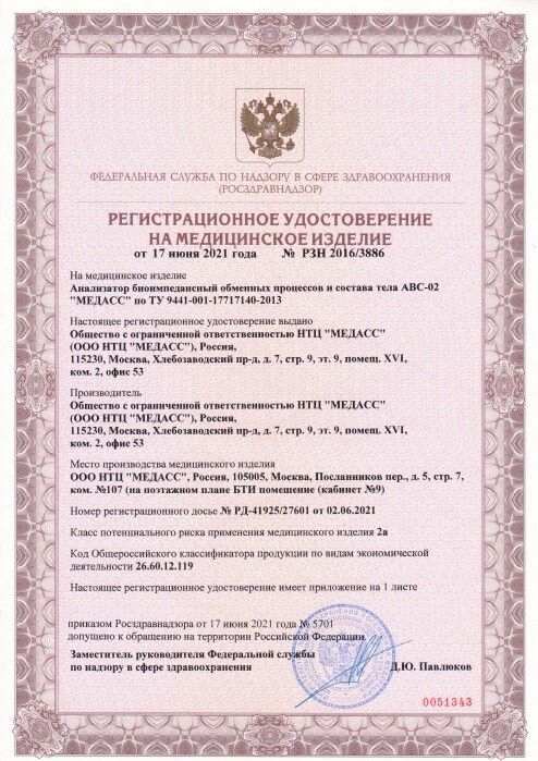 Оценивает показатели жировой и мышечной массы, основного обмена, метаболических процессов,
