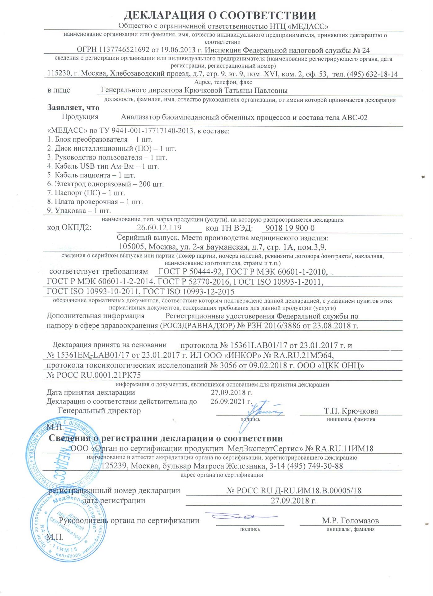 Декларация соответствия