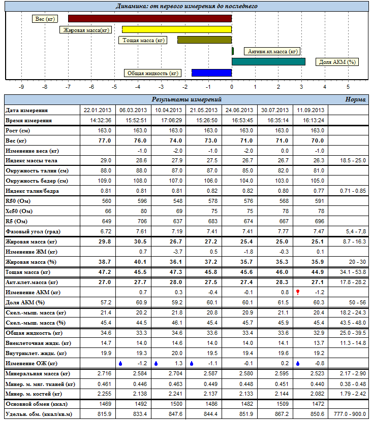 Оценивает показатели жировой и мышечной массы, основного обмена, метаболических процессов,